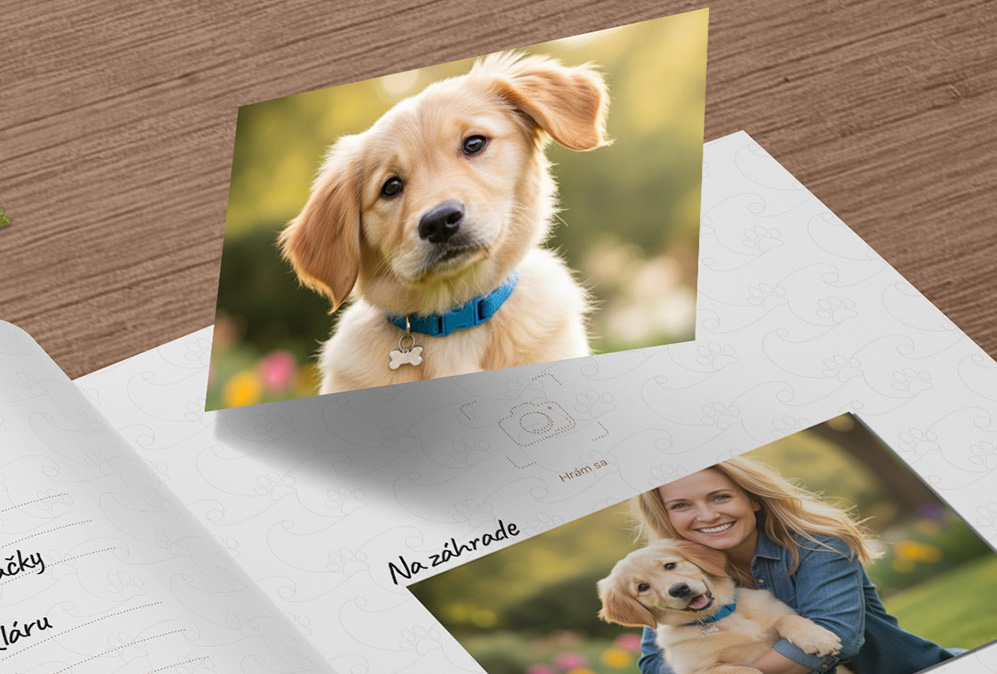 Vlepujte fotky vášho psíka a vytvorte krásnu spomienku.